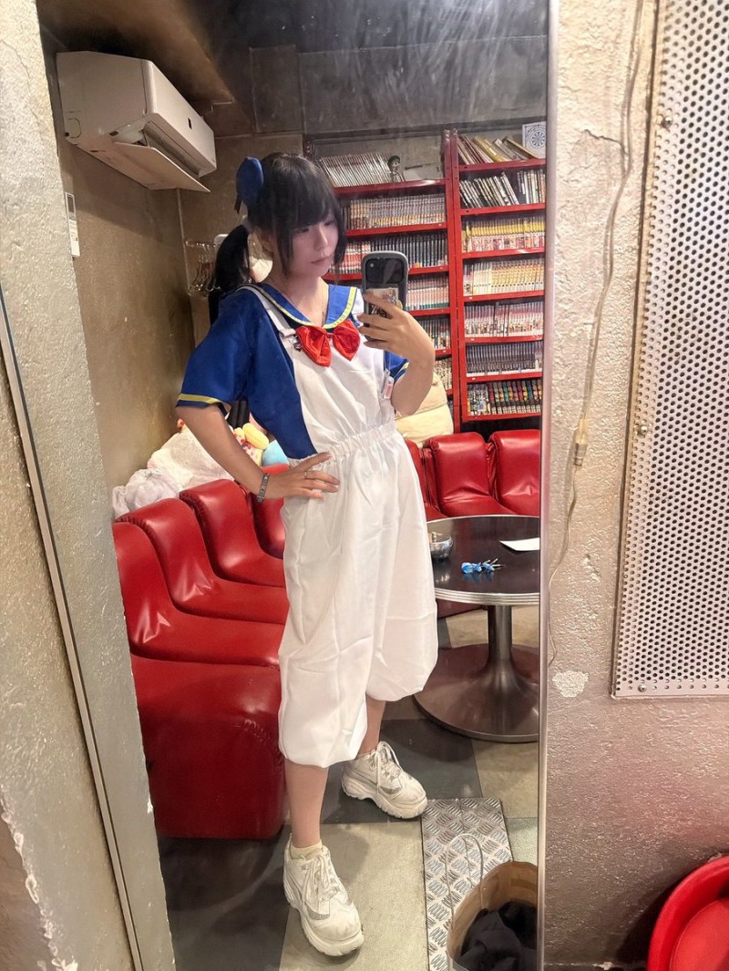 いのうちゃん遠隔ありがとうー!!!中学生の時セーラー服だったんだけどそこから数えると15年ぶりのセーラー服でやばいWWWWWW 黒髪だからまだいけるかなって思ったけど結構ダメ‼️歳を感じる‼️‼️ 来年のハロウィンはいっそおばあちゃんやろうかな👵 明日のコスプレも楽しみにしててネ⭐️ https://t.co/ApVqvhY3sP