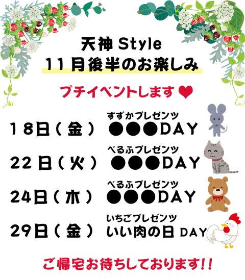 🎀天神Style 11月後半のお楽しみ🎀