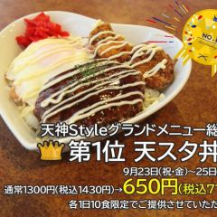 9月24日(土) 本日は12時から22時まで開館いたします! 天神styleグランドメニュー総選挙第一位『天スタ丼』を本日も半額で提供させていただきます🍴 1日10食限定なのでお気をつけくださいませ😌 チェキクエストも開催中です✨ https://t.co/GHYatUNltA