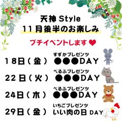 ✨✨✨速報✨✨✨ 🎀天神Style 11月後半のお楽しみ🎀 プチイベント開催します!! 各日どのような催しになるかお楽しみに☺️💕 https://t.co/kdsQ5OqkuH