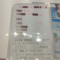 | 営業時間 | 12:00〜22:00(最終受付21:20) 定休日 不定休 深夜営業については、公式ページ右上の深夜営業日案内を ご覧ください(金曜・土曜日を中心に深夜営業予定)。 深夜営業対象日 22:00〜翌朝5:00(最終受付 翌朝4:20) http://market.chu.jp/schedule1/sche37.cgi ミアグループ総合スケジュール(PC&スマホ) http://market.chu.jp/schedule1/sche37.cgi?dm=1 ミアグループ総合スケジュール(ガラケー) 告知日のみ営業となります。告知日以外は深夜営業いたしておりません。 | ||||||||||||||